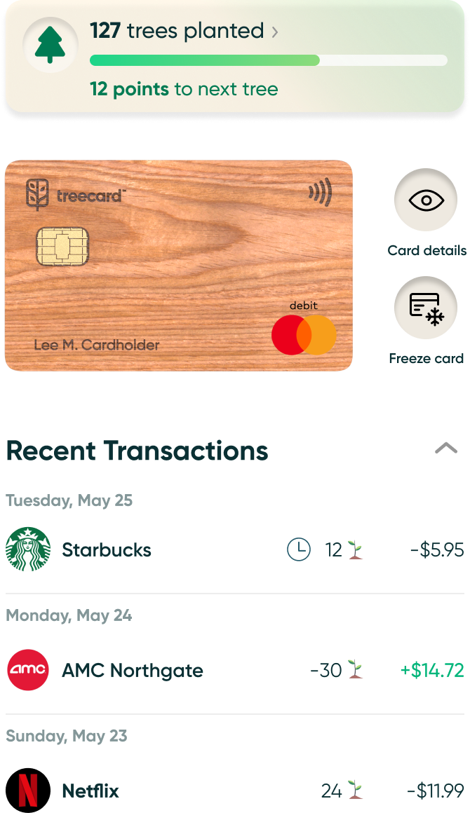 This website is operated by Treecard Inc. Treecard reserves the right to restrict or revoke any and all offers at any time. The Treecard® Mastercard® debit Card is issuThis website is operated by Treecard Inc. Treecard reserves the right to restrict or revoke any and all offers at any time. The Treecard® Mastercard® debit Card is issued by Sutton Bank, Member FDIC, pursuant to a license from Mastercard International Incorporated.